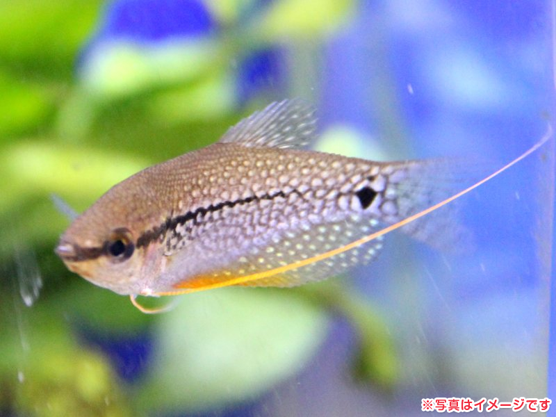 10センチを超えるちょっと大き目の魚ですが、成魚のゴージャスで美しい姿に魅了されます。成熟したオスは、ヒレがビラビラになりプレスリーの衣装のように豪華。のど元も婚姻色がでれば鮮やかなオレンジになりいっそう派手さがます。(税込306円)