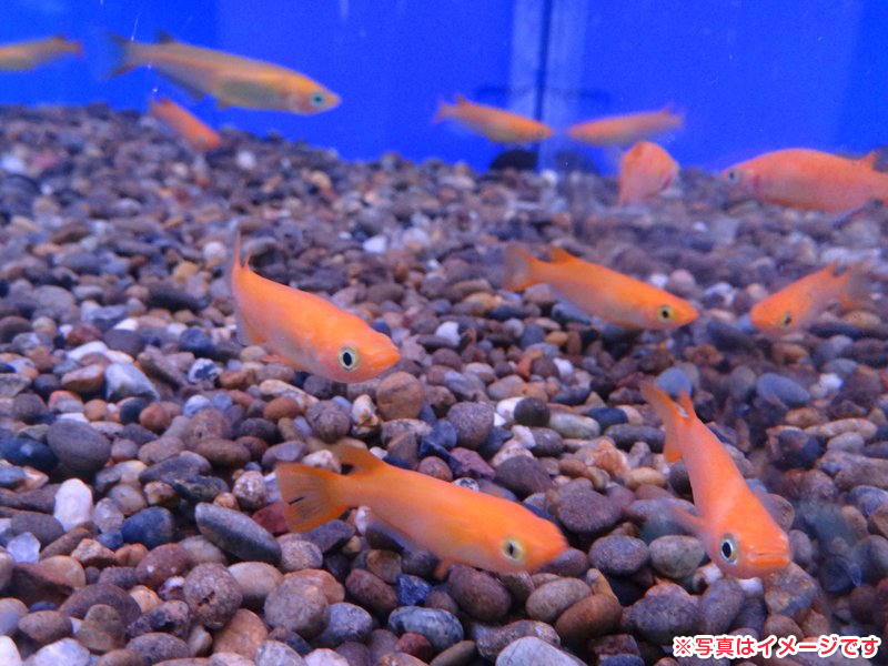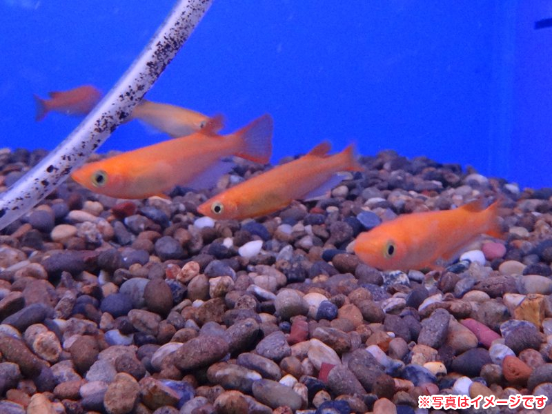 ヒレも赤いメダカ。 色の濃さで値段も変わります。(税込612円)