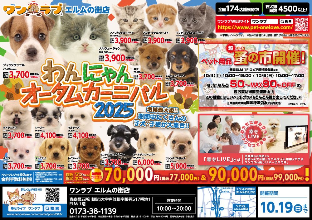 10月4日(土)より、ペットショップ ワンラブ エルムの街店にて、わんにゃんオータムカーニバルを開催させていただきます!!